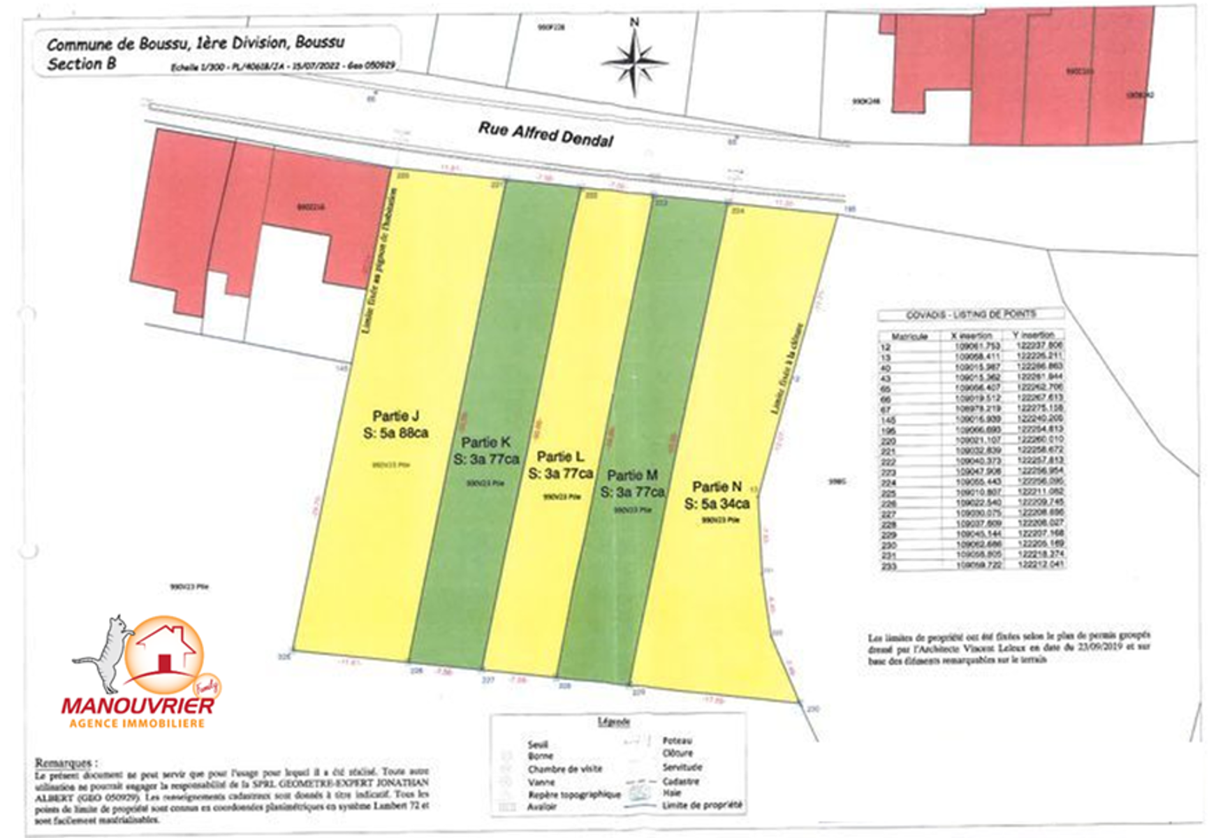 Situé à Boussu-Bois, dans la superbe et prisée vallée du Hanneton dans un cadre verdoyant et paisible, 1 projet neuf cherche son/ses futur(s) propriétaire(s). Le caractère paysager, naturel et l’ambiance « havre de paix » de la vallée ne pourra que vous séduire. Le permis accorde la construction d’une maison 3 F, elle se compose comme suit : • Au rez-de-chaussée : un garage, un hall d’entrée avec WC séparé, séjour, cuisine et une buanderie. • L’étage : trois chambres, une salle de bain fonctionnelle et un hall de nuit. Lot 1 : 5 ares 34 centiares - Faire offre à partir de 39.500€ hors frais (sous réserve d'acceptation des propriétaires) Option 1 : Achat du terrain seul sans construction. Faire offre à partir de 39.500 € hors frais Option 2 : Achat du terrain avec la construction gros œuvre couvert fermé via le gestionnaire de chantier. Faire offre à partir de 225.000 € hors frais par projet Option 3 : Achat du terrain avec la construction clés sur porte via le gestionnaire de chantier. Faire offre à partir de 260.000 € hors frais par projet. Honoraires d'agence à charge de l'acquéreur L’agence ne dispose pas du pouvoir de vente ; le propriétaire se réserve le droit d’accepter ou non les offres. Informations communiquées à titre indicatif et non contractuelles. Les rendus ont été réalisés pour vous aider à visualiser la maison et sont non contractuels. Infos/visites : srl.ifm@outlook.be ou 0471/74.79.69. https://www.immofamilymanouvrier.be/fr